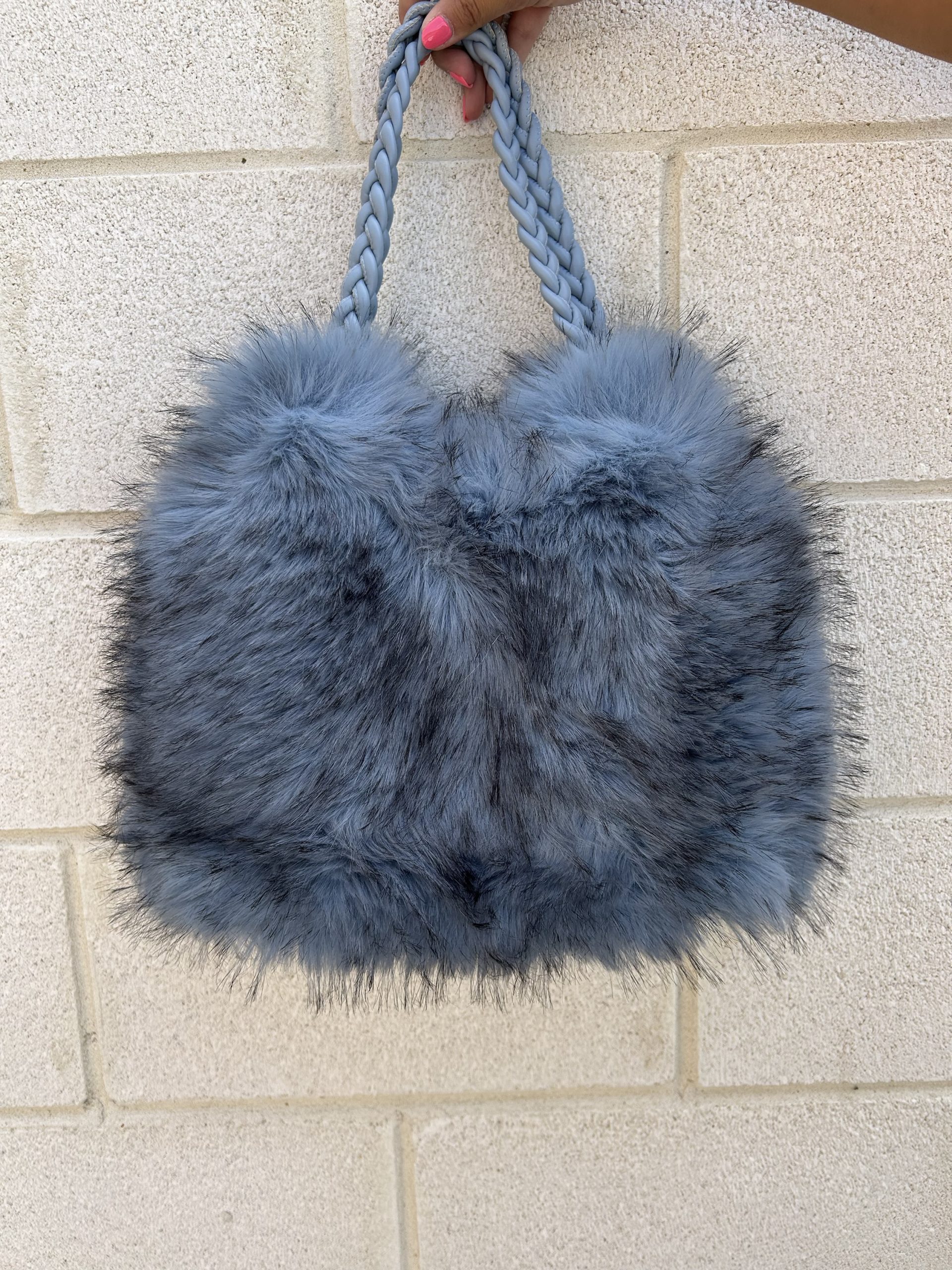 Bolso color celeste de pelito y piel estilo peluche