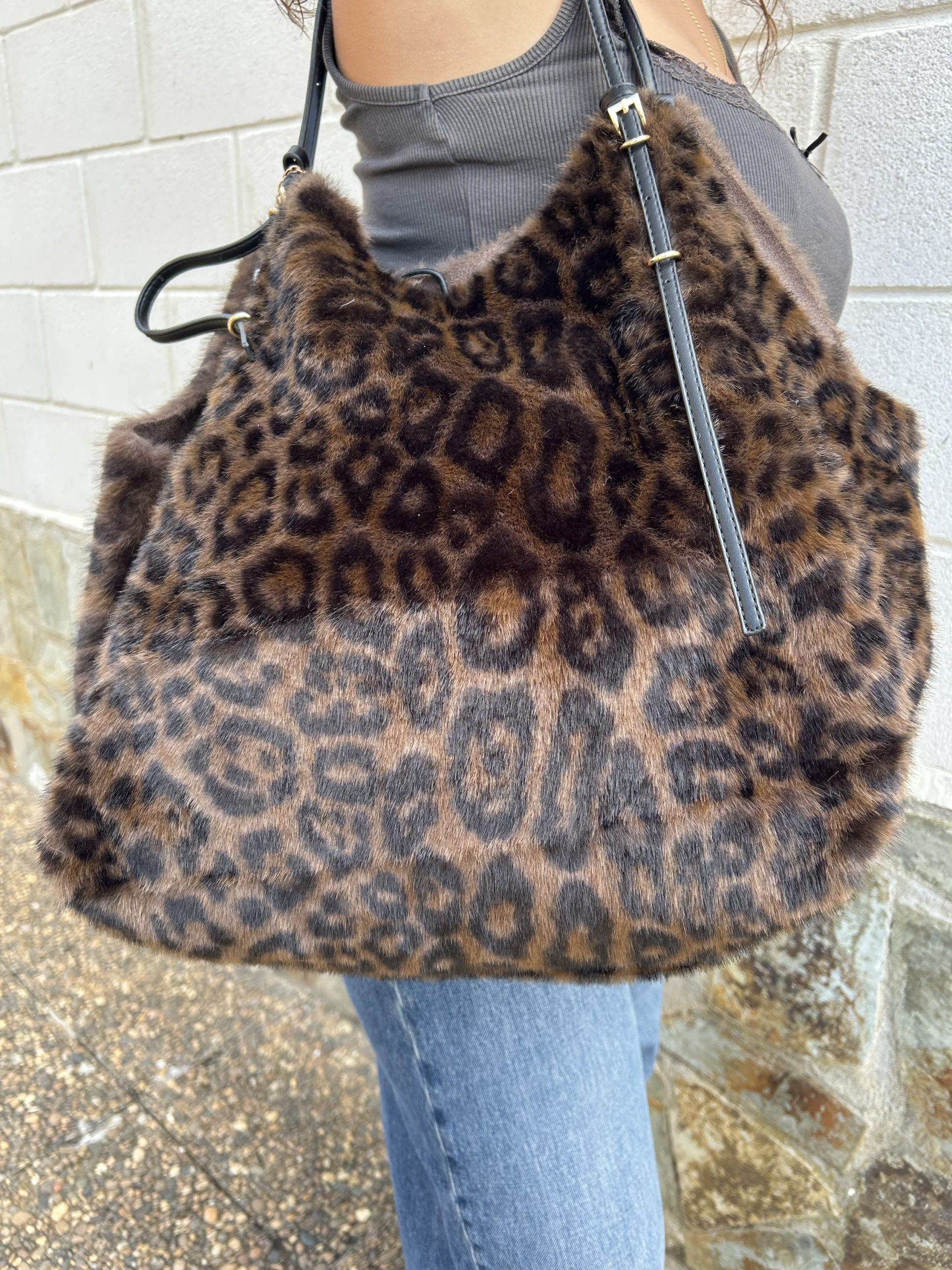 Bolso de piel y pelo café reversible