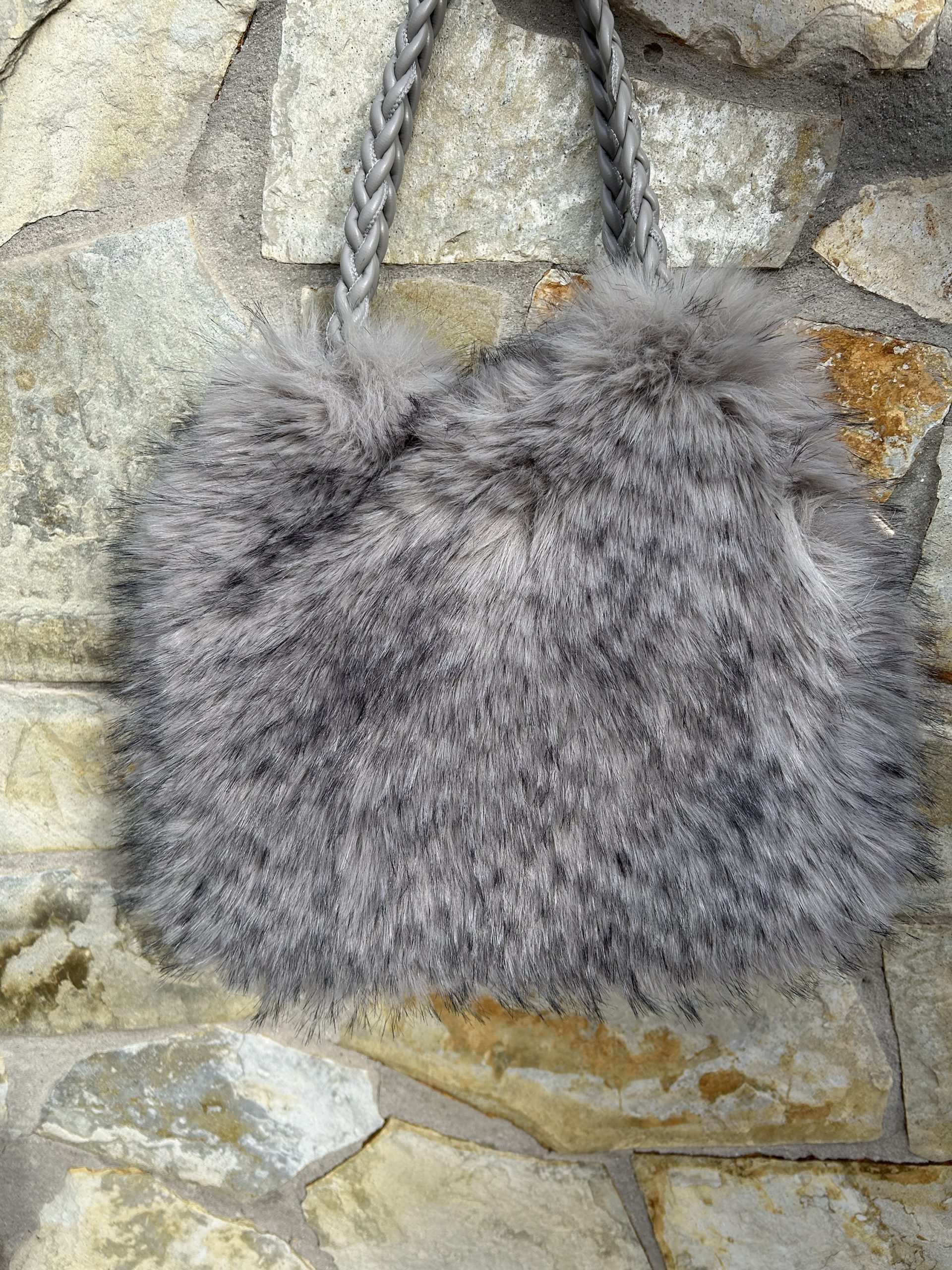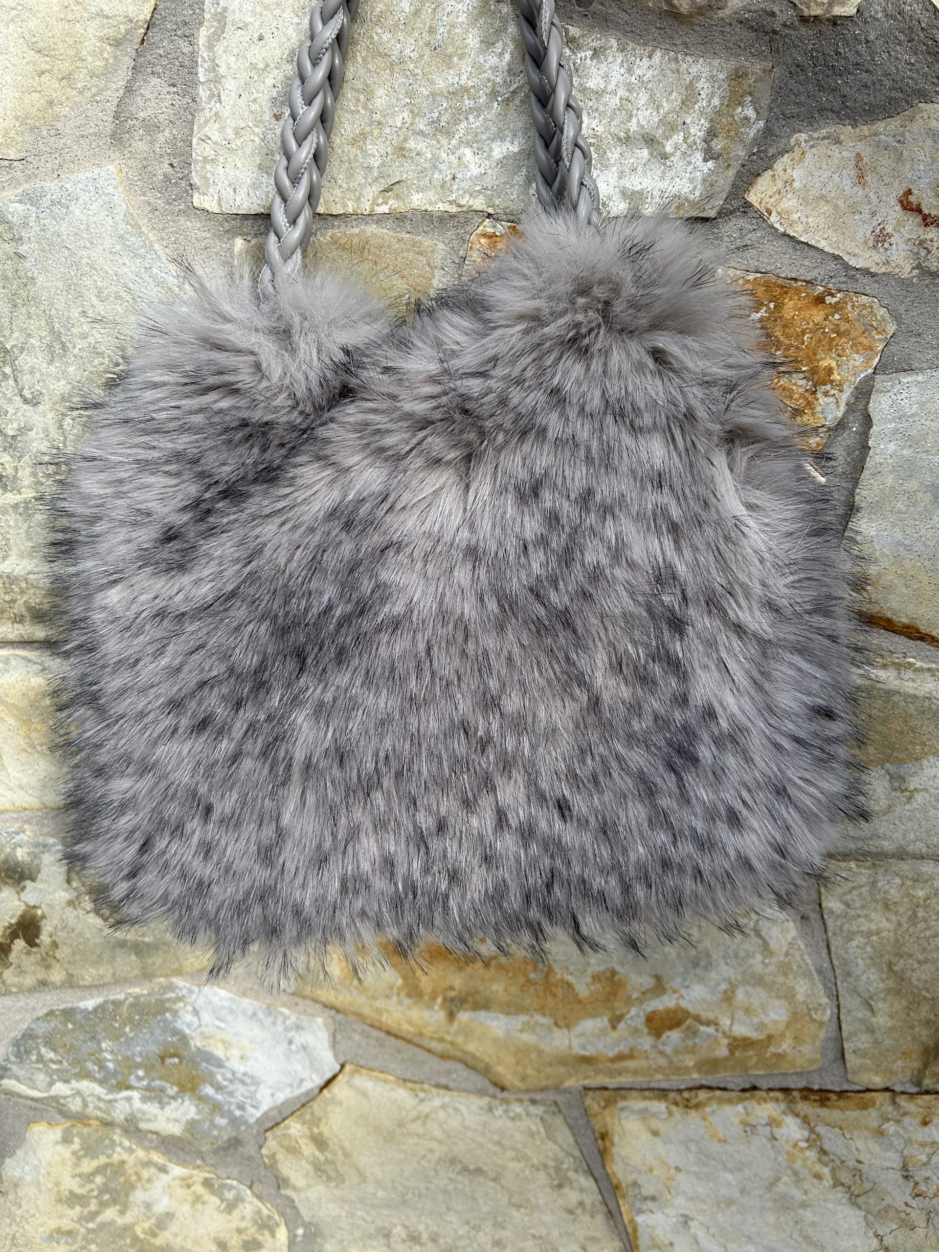 Bolso con asa de piel y pelito gris de Alex Max estilo peluche